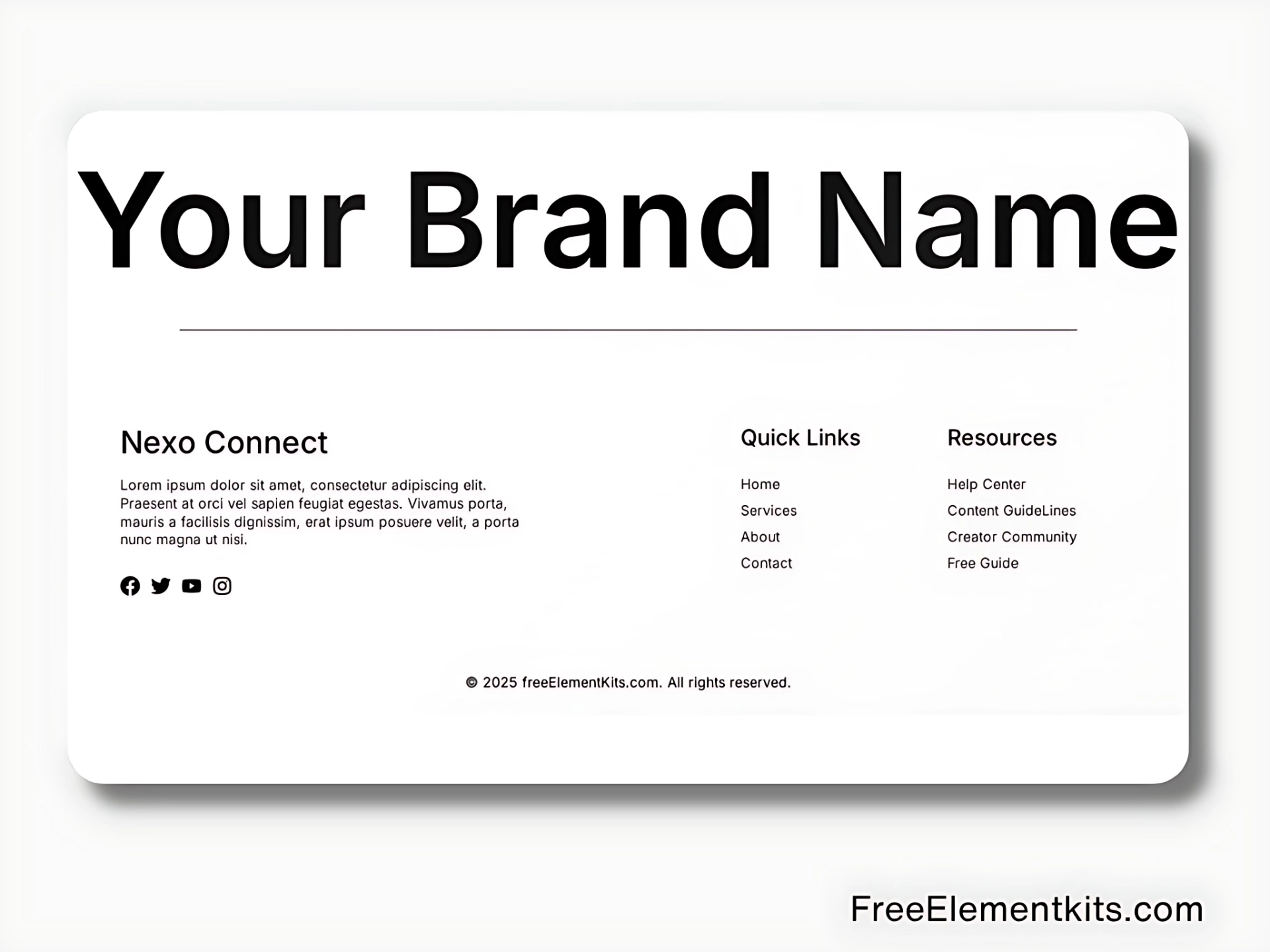 Enhance your WordPress site with a clean, white-themed footer built using Elementor. Simple, modern, and free to customize without extra plugins.